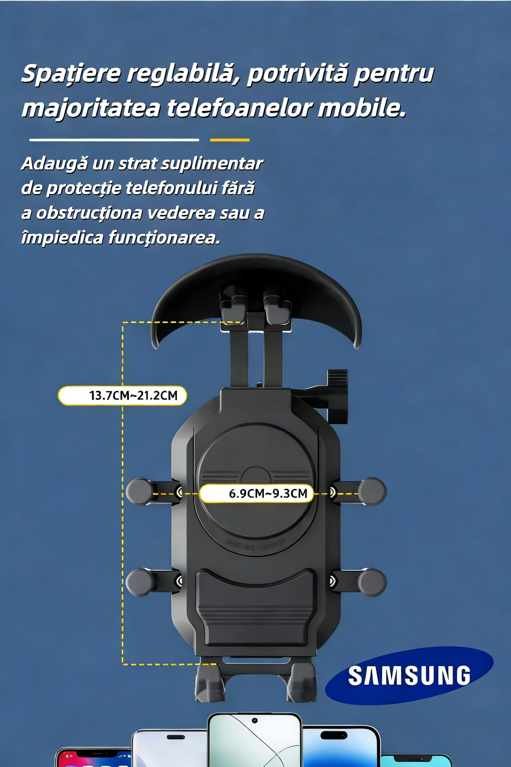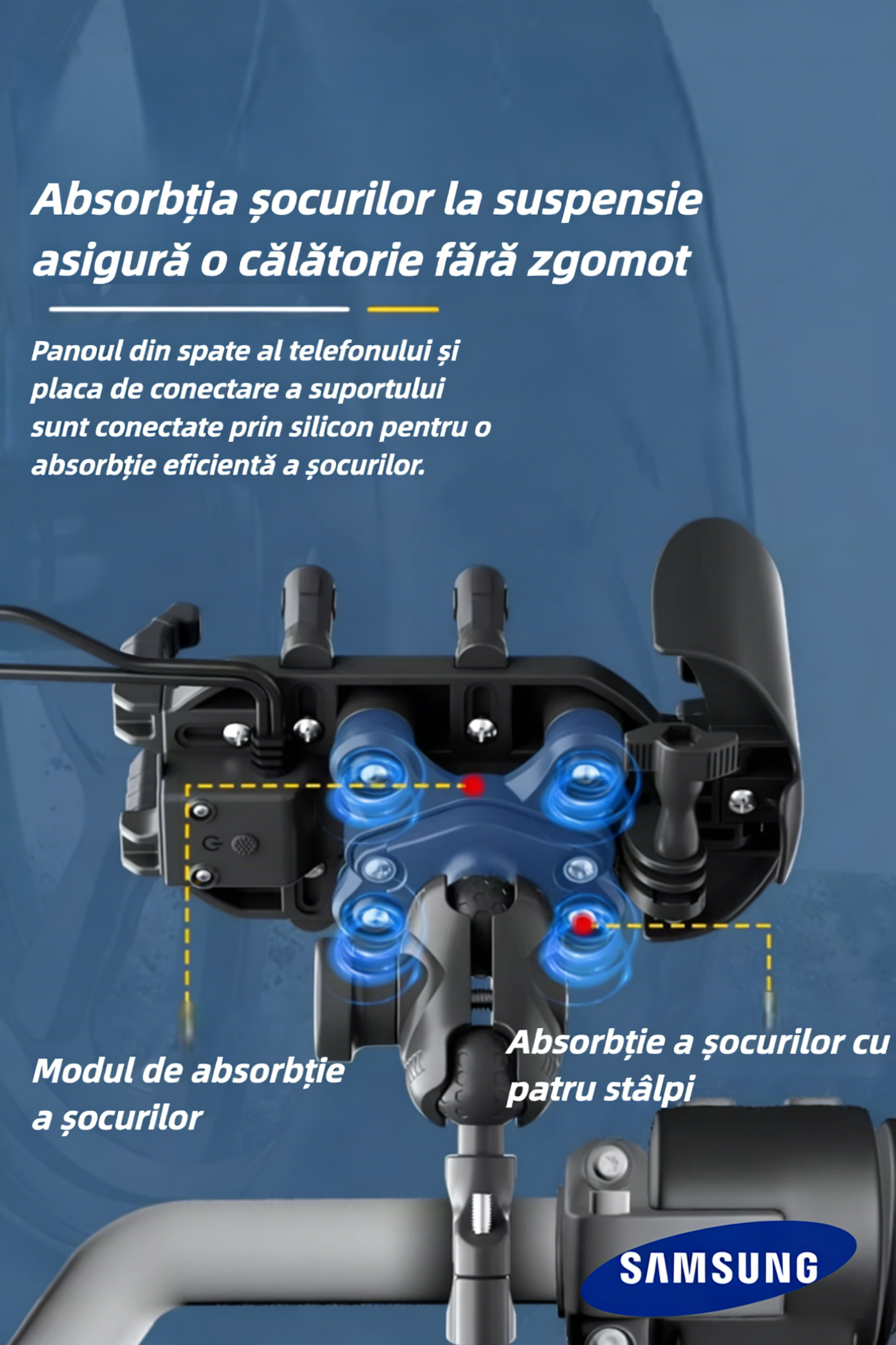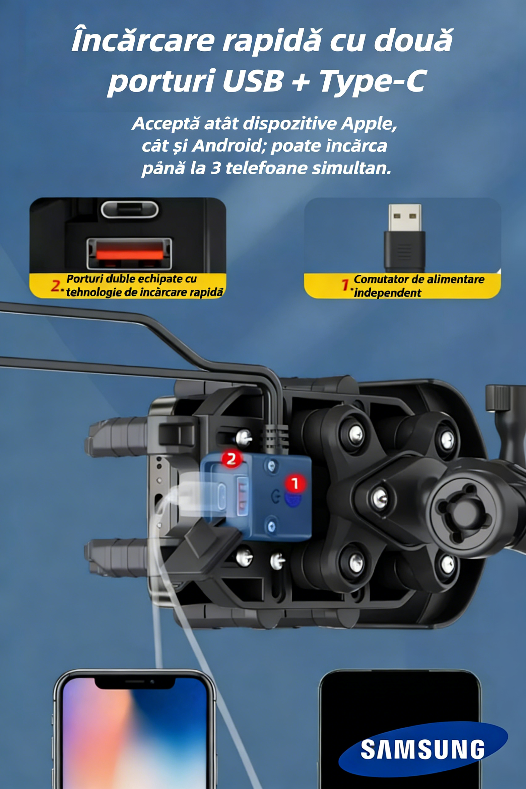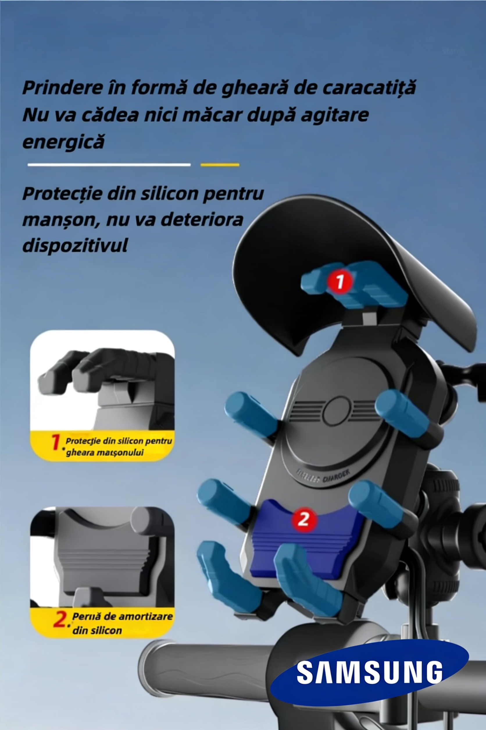 Suport pentru telefon Samsung moto 2026, rezistent la ploaie și zăpadă, cu protecție solară, rotire 360° și încărcare wireless